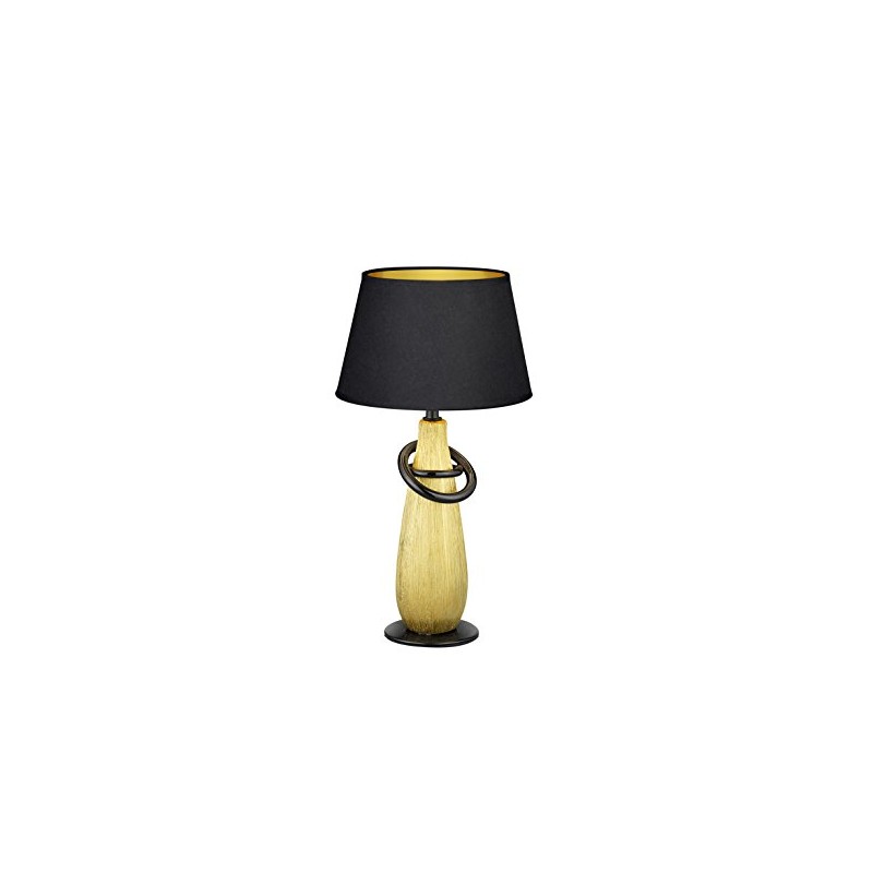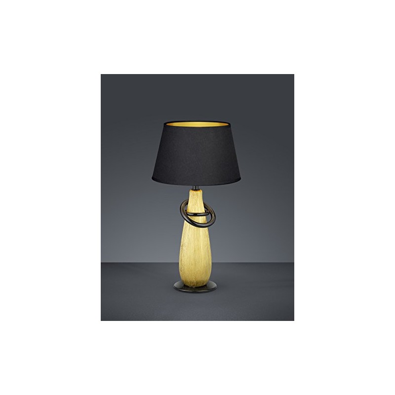 • Thebes table lamp with a gold ceramic base and a fabric shade in the colour black/gold