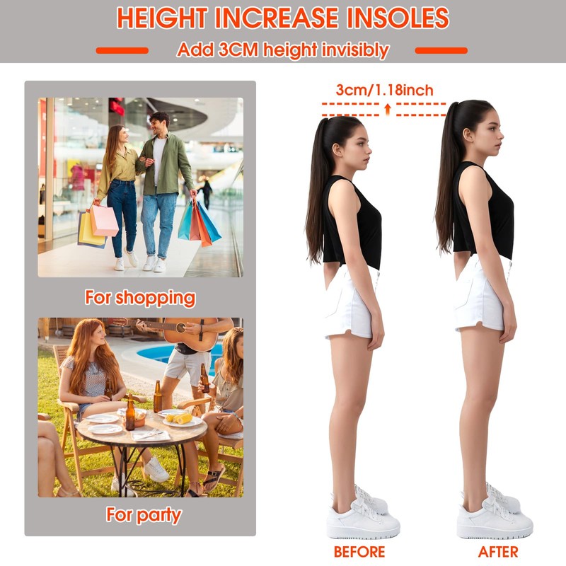 - Invisible increase insoles: The gel height for increasing the insole is invisible, no one will know you are wearing them. Increase your height in seconds. Invisible increase. Make yourself safer to participate in various events such as meetings, parties, dating, shopping, weddings, etc.