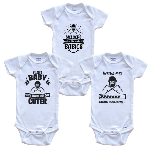 Really Awesome Shirts Welding Welder Funny Cute Baby Bodysuit Bundle (3 Piece Set), 3-6 Months White