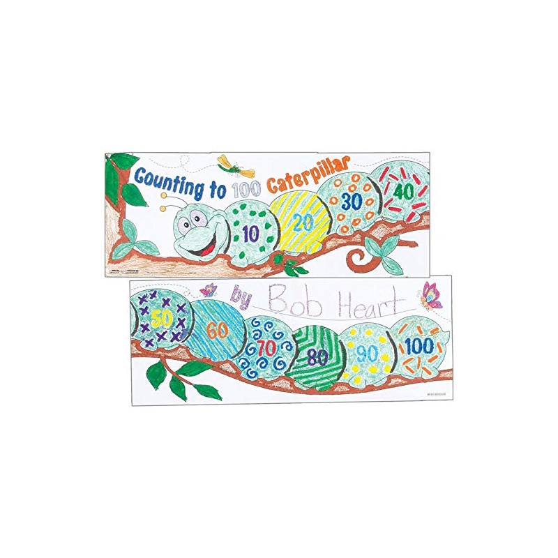 Really Good Stuff 100th Day of School Decorate Posters- 24 Pack- Count to 100 Caterpillar Posters-100th Day Activities for The Classroom
