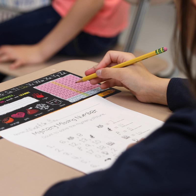 Put Curricular Content Where Students Can Access It Easily - On Their Desktops! These durable helpers are easy to peel and stick on any desktop surface to stay put all year. Available in a variety of styles, Really Good Stuff Desktop Reference Nameplates will add a colorful touch of learning to your classroom. Made of strong deluxe plastic, Really Good Stuff has the most durable desktop reference name tags on the market! Easy to peel and stick onto any surface, these desktop helpers will stay put all year long. What’s better? They easily wipe clean with a damp cloth, helping to keep them accessible for your students. Each manuscript student nameplate is full of bright colors and brings a pop of style and organization to every student’s desk. Measuring at 18” by 5” each, these are the perfect size for any classroom. A great tool for students to practice critical thinking, writing skills, counting, learning shapes, colors, and directions all in one place! This reference name tag features a number line, alphabet letters, 2-D and 3-D shapes, colors, left and right, a 120 grid and plenty of space for students to print their name. All in a fun chalkboard art style.