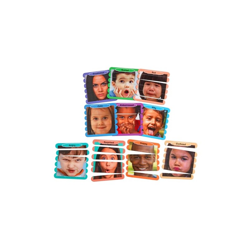 • FACIAL EXPRESSIONS: Puzzles are double-sided so kids can identify how emotions look similar or different, depending on the person. Learn to identify how a person feels through facial expressions.