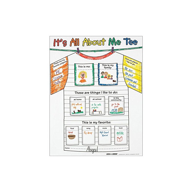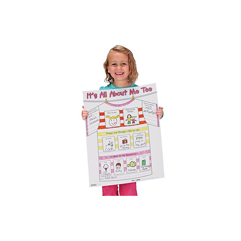 Creating and presenting the posters is an engaging and interactive activity for students and a chance for teachers to highlight similarities and differences among the students in the class. It’s a great getting-to-know-you activity at the beginning of the year or a special way to feature students throughout the year. All About Me Tee Posters are great for students in grades Pre-K–3.