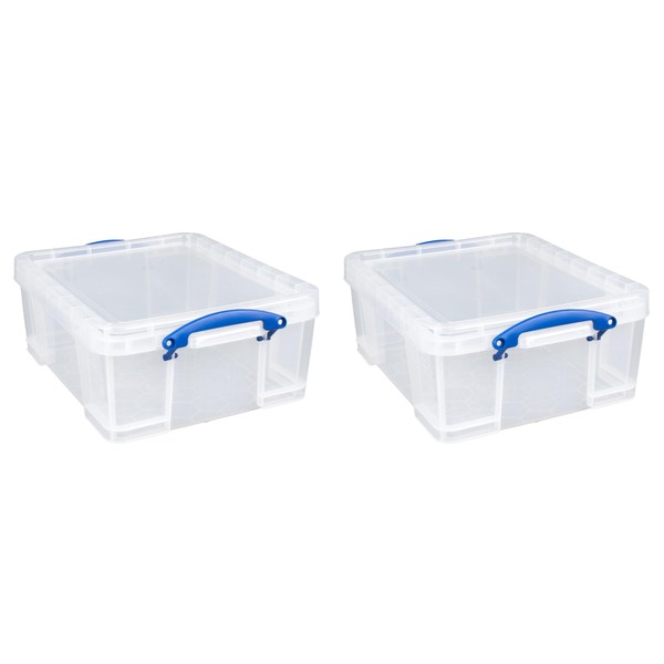 Really Useful Box 17 Liter Plastic Stackable Storage Container w/Snap Lid & Built-In Clip Lock Handles for Home or Office Organization, 2 Pack, Clear