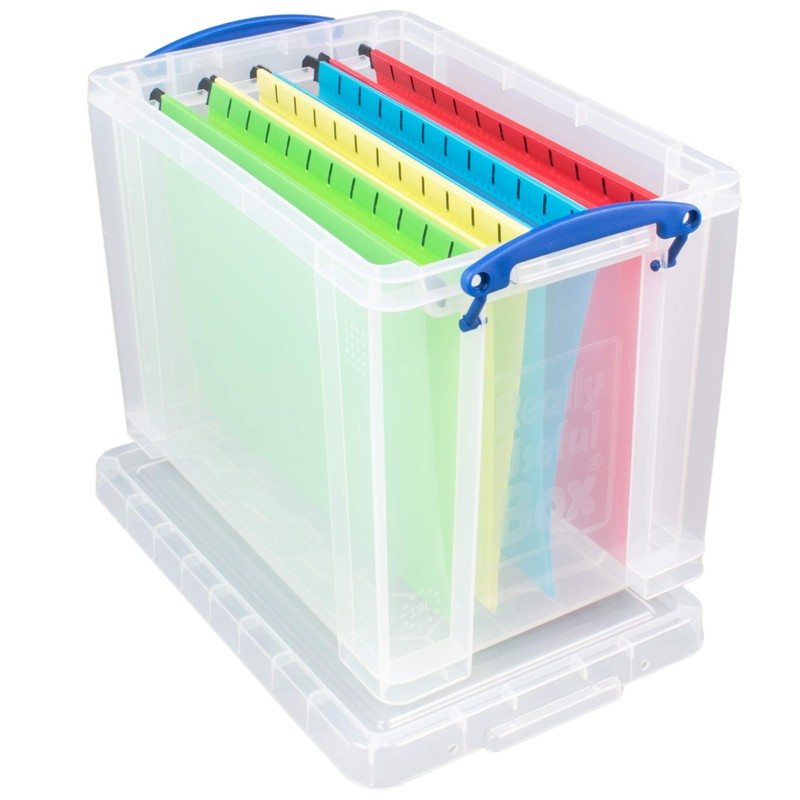 Pop everything into a Really Useful box from A4 paper to art stationery, utilise every corner with this polypropylene surface that can be stacked and stored away. Just seal the lid with a tough, reliable clip-top on the edge and put it away. From the office to the home, this box is ideal for keeping your odds and ends off the desk and inside a secure, portable plastic box. The sturdy top and reinforced corners allow these boxes to be stacked together at different weights and sizes. Dimensions: External: 395 x 255 x 290, Internal: 315 x 205 x 270(length x width x depth in mm), Weight:1,200g, Suggested uses: A4 paper (5 reams), A4 suspension files, Under-the-sink cleaning equipment box, Car care box