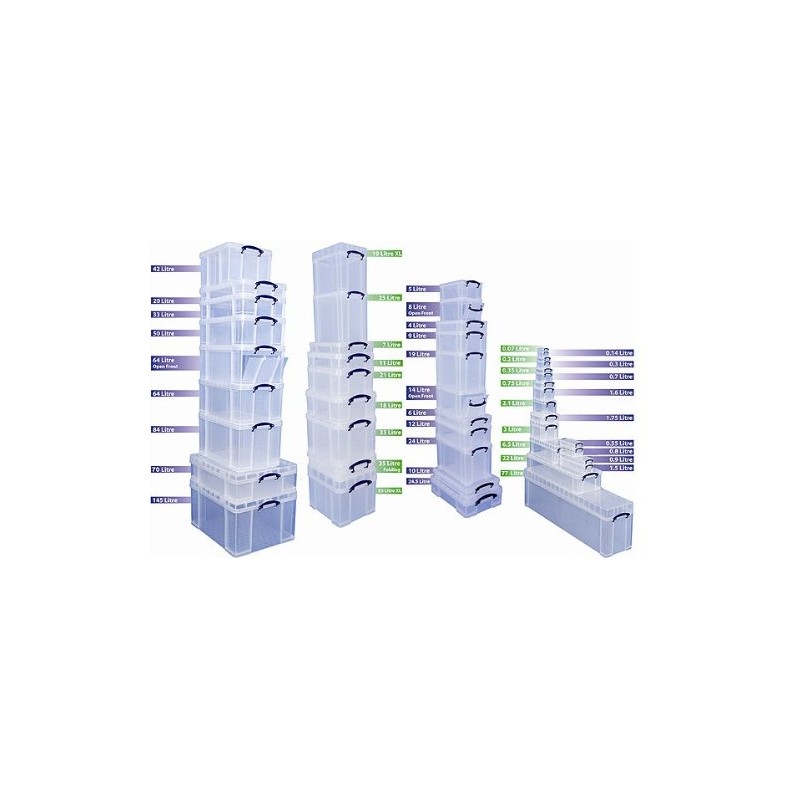 Really Useful Box 6 x Storage Boxes 0.8 Litres with Lid Transparent