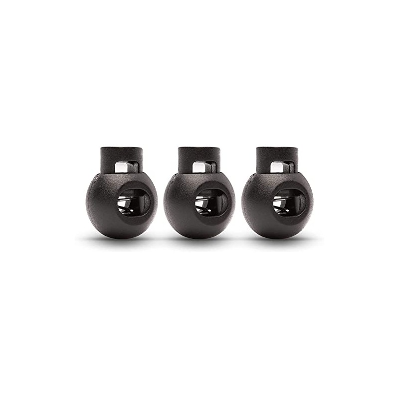 Realm Single Hole Round Cord Locks Black with Spring Loaded Push Button (Pack of 12)