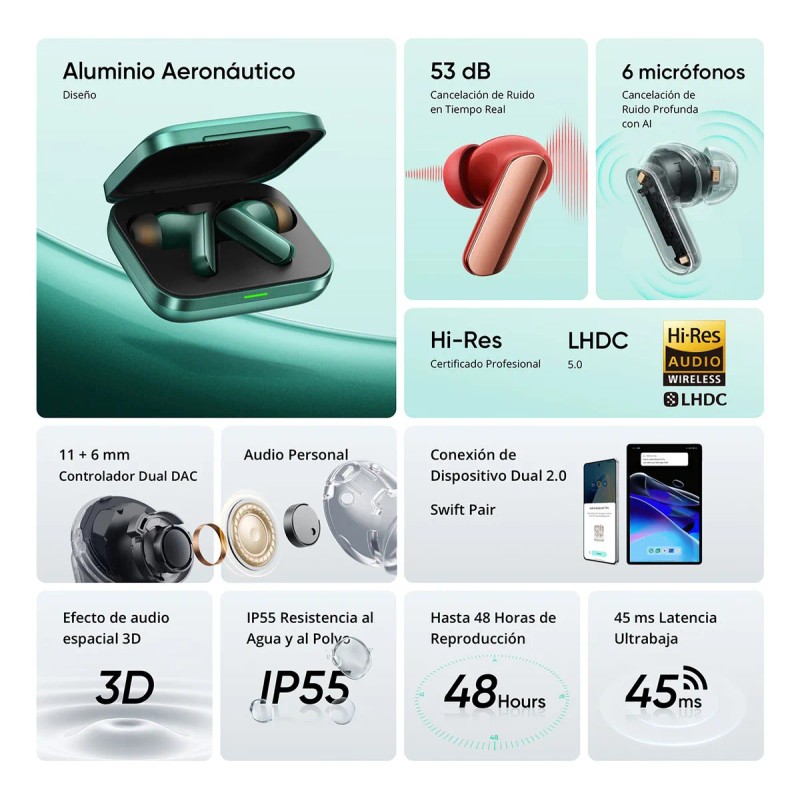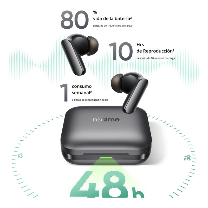 Realme Buds Air 7 Hi-res Lhdc 5.0 52db 52h Batería Ip55 Color Gris