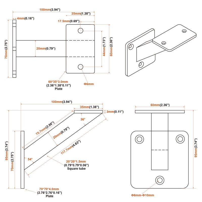 - The stair railing bracket are suitable for mounting to wooden flat square railings or steel handrails