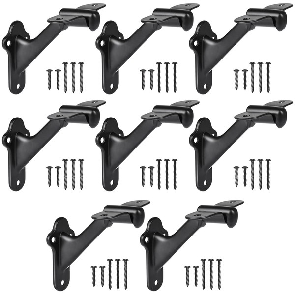 RealPlus Handrail Bracket, 3" Staircase Hand Rail Brackets for Stair Railing with Screws, Black (Pack of 8)