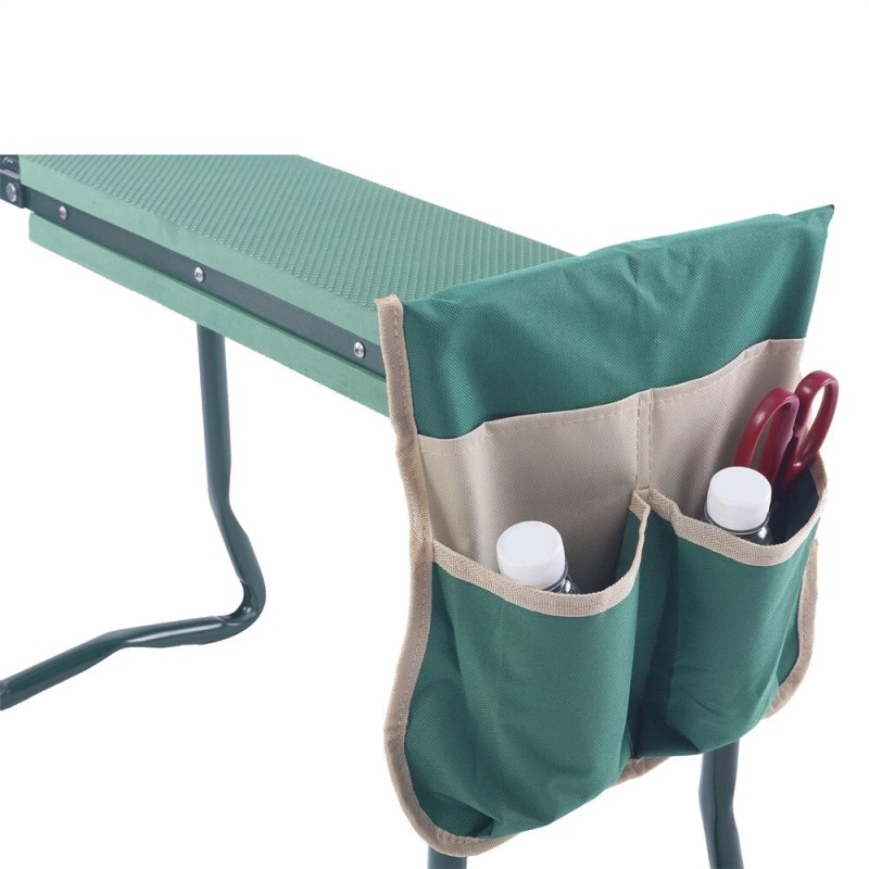 Material: Garden kneeler & seat: Steel Tubing, EVA Foam and Plastic Tool Pouch
