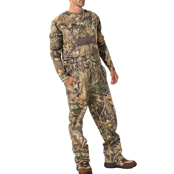 Realtree Men's Camo Hunting Cotton Bib Overalls, All-season Uninsulated Camouflage Bib Overalls for Outdoor Activities (EDGE Camo, Medium)