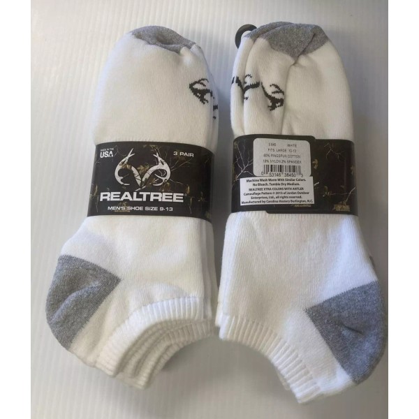 Realtree New, Realtree Men's Cotton No-Show Socks, Large, White, 12 pairs, Made in USA!