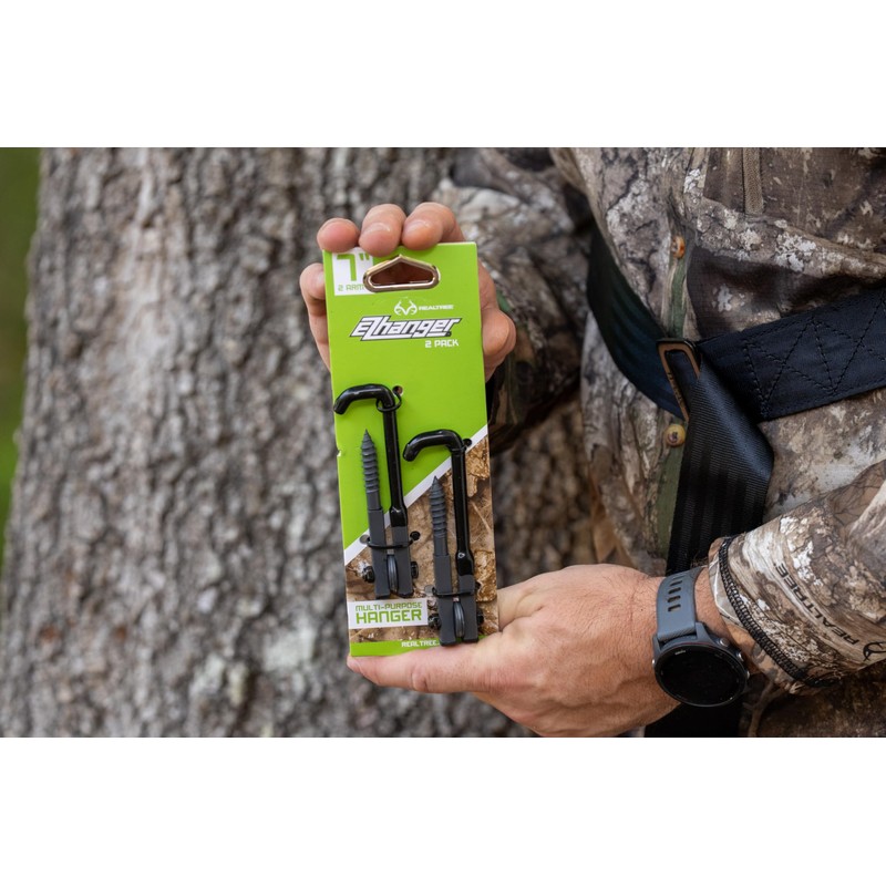 Realtree EZ Hanger Combo Pack – 7" 2-Arm Bow Hanger with Arrow Holders – Tree Screw Mount for Treestand Hunting – Quiet, Durable & Adjustable Hook Arm