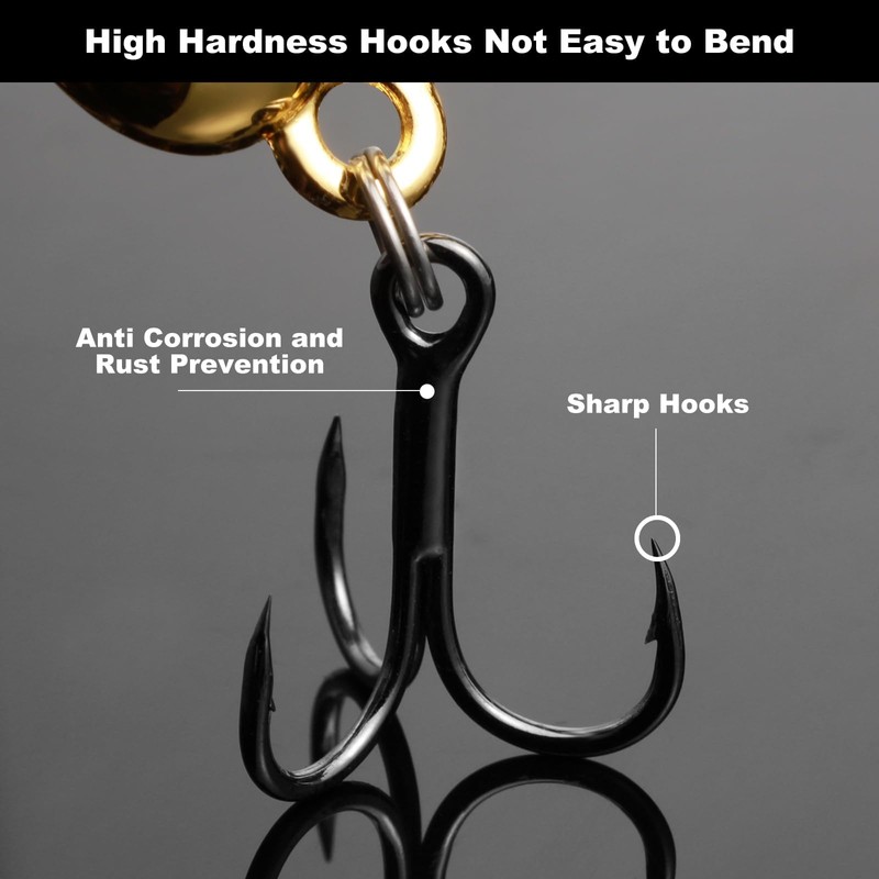 • 【Suitable for Bionic Bait Fishing】Our Metal Fish Hooks are used in freshwater and seawater, imitating weak creatures to trigger attacks by big fish, and are suitable for ferocious fish species such as Bass, Snakehead, Topmouth Culter