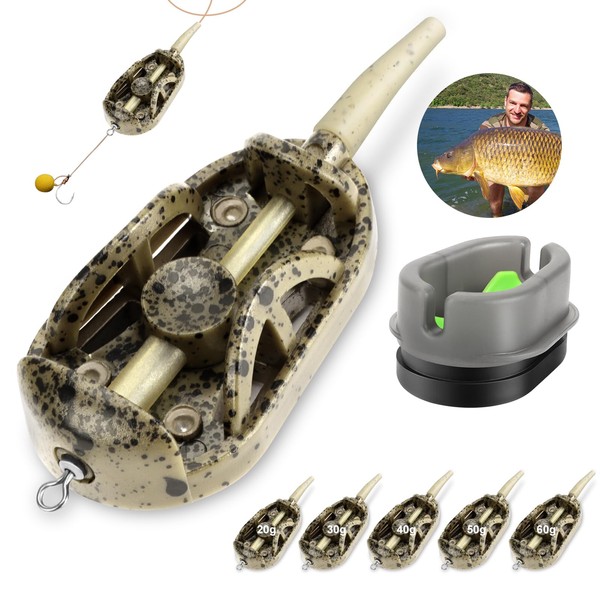 Realure Feeder Accessories, 5 in 1 Method Feeder, Carp Fishing Feeder, Inline Lead Feeder Fishing with 20 g 30 g 40 g 50 g 60 g Weight Feeder for Bottom Fishing, Pellets Carp Feeder Rod Carp