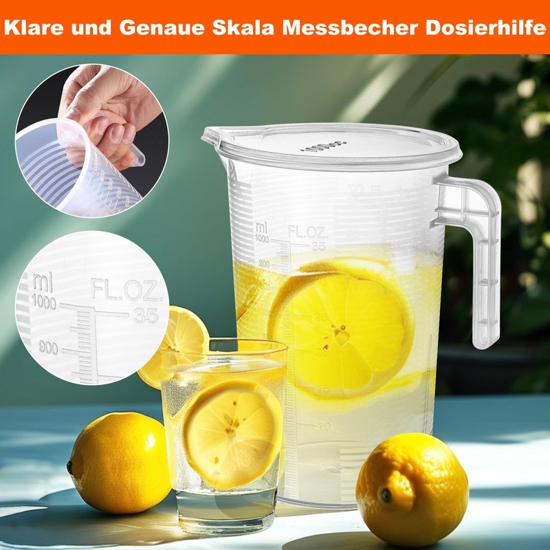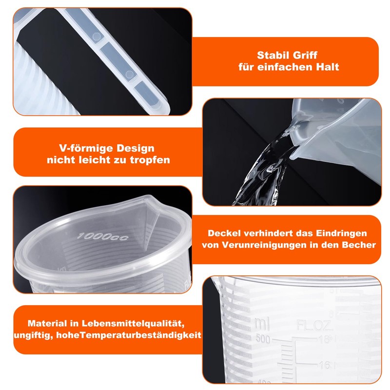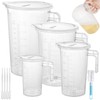 Realure Set of 4 Measuring Cups Plastic Measuring Cups with Scale 100 ml 250 ml 500 ml 1000 ml, Transparent Measuring Cup Small with Pipette/Lid/Brushes, Measuring Cup Dosing Aid for Kitchen Baking