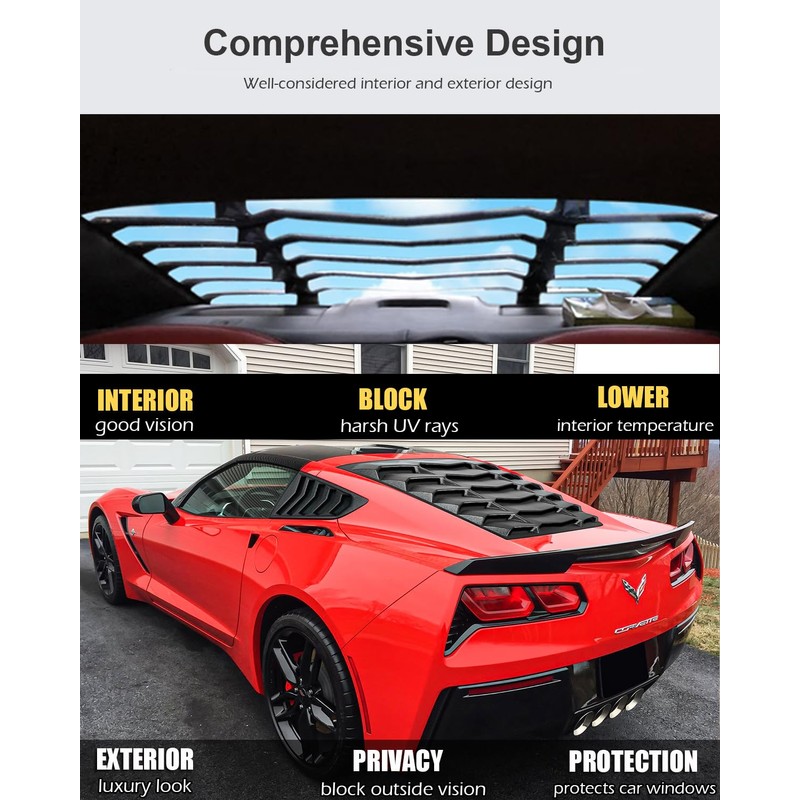 - Powerful Function -- While blocking the external sight, C7 window louvers can maintain a good view and light in the car, protect privacy and ensure driving safety. This for c7 corvette louvers are designed and manufactured to ensure superior quality and light weight. Our this for c7 corvette louver is designed to provide appearance upgrades for your vehicle. Our this window louver can give your vehicle a more aggressive racing and luxury charming look