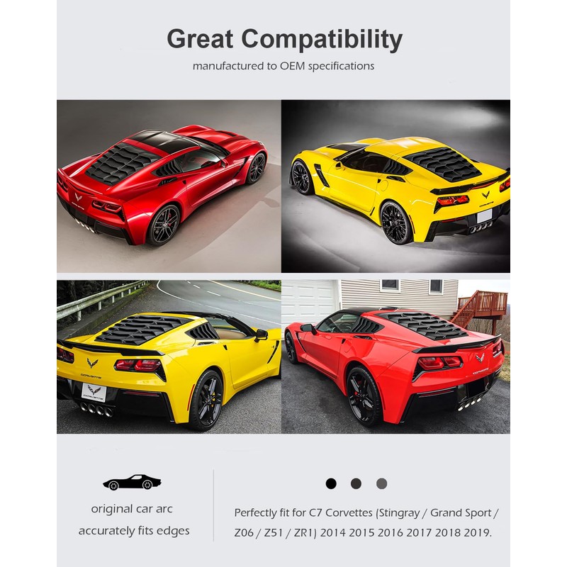 - Perfect Compatibility -- Louvers fit for C7 Corvettes (Stingray / Grand Sport / Z06 / Z51 / ZR1) 2014 2015 2016 2017 2018 2019. Fits the edges precisely, making your car unique