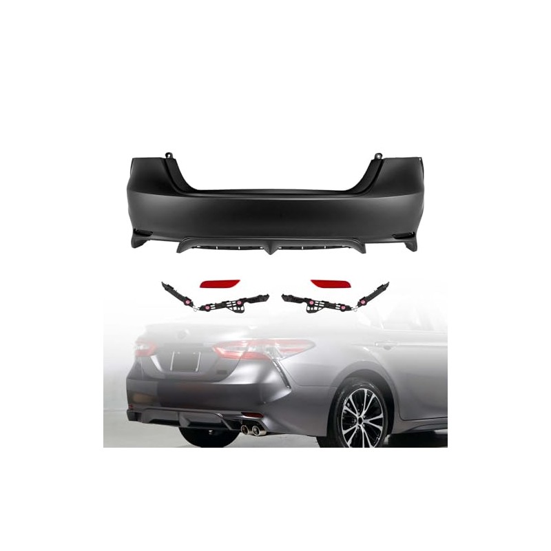 Rear Bumper Cover Fits 2018 2019 2020 2021 2022 2023 2024 Toy-ota Camry SE XSE Hybrid Sedan, W/Bracket Retainer Mount & Reflectors 521590X915 TO1100335