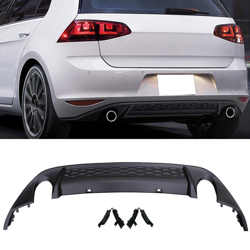 Rear Diffuser Compatible with 2015-2017 Volkswagen VW Golf 7, MK7 Rear Bumper Lip Diffuser Single Muffler Twin Outlet by IKON MOTORSPORTS, 2016