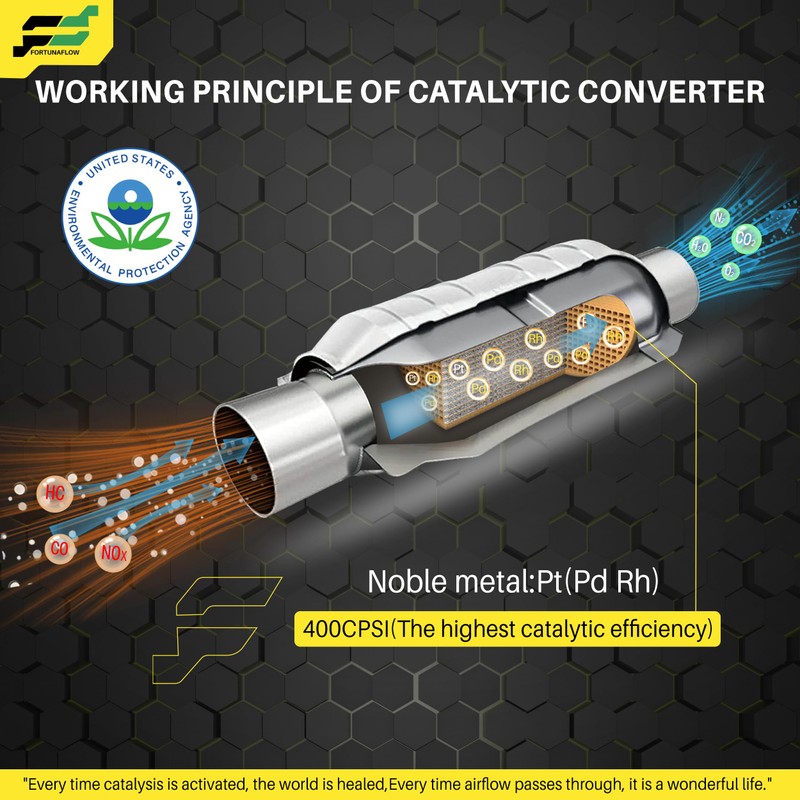 - [HIGH CATALYTIC PERFORMANCE] ①The precious metals palladium, platinum, and rhodium inside the FortunaFlow catalytic converter exceed the standard EPA replacement parts on the market by 3 - 4 times. ②It can eliminate the P0420,P0430 warning lights and effectively stabilize and reliably pass the OBD-II tests.