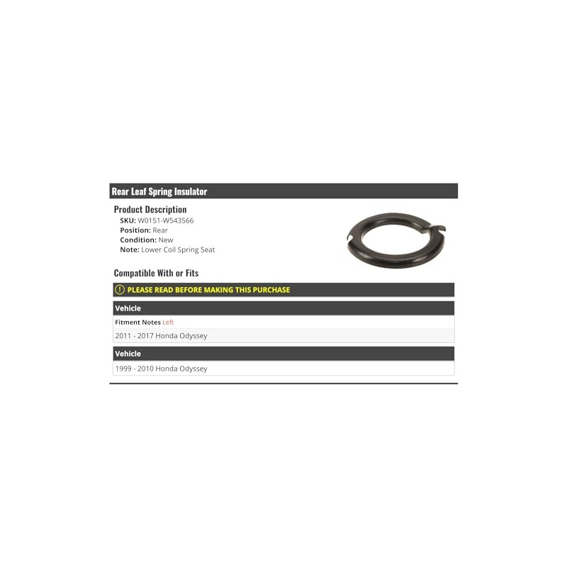 Rear Lower Coil Spring Seat - Compatible with 1999-2017 Honda Odyssey