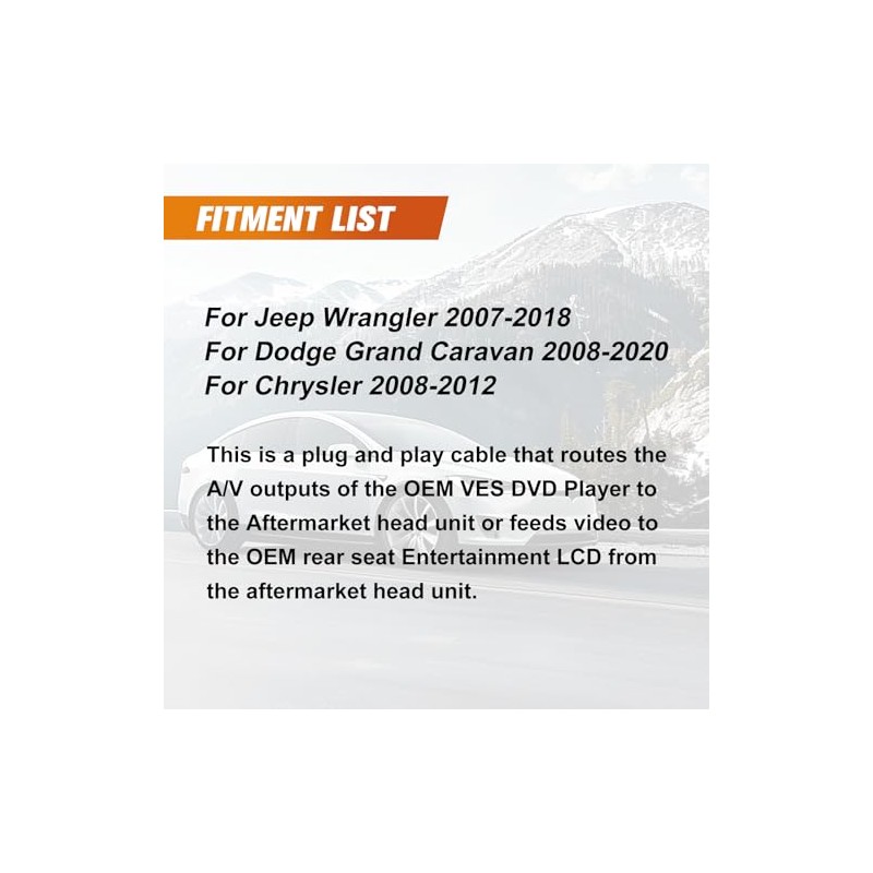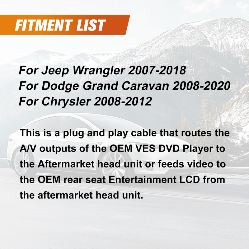 • 【Plug and Play】Plug and play cable which routes the A/V outputs of the OEM VES DVD player to aftermarket receiver