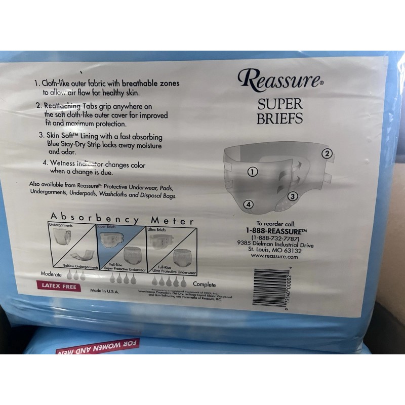 REASSURE Heavy Protection Large Unisex Super Briefs Size Large 45-58”