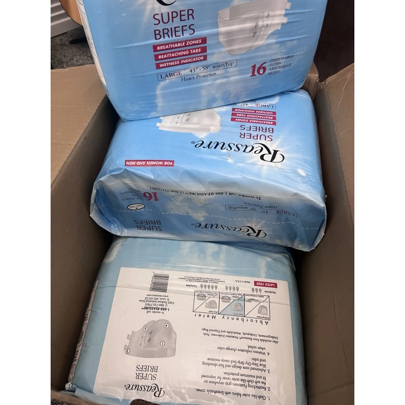REASSURE Heavy Protection Large Unisex Super Briefs Size Large 45-58” - Brand New Condition ….