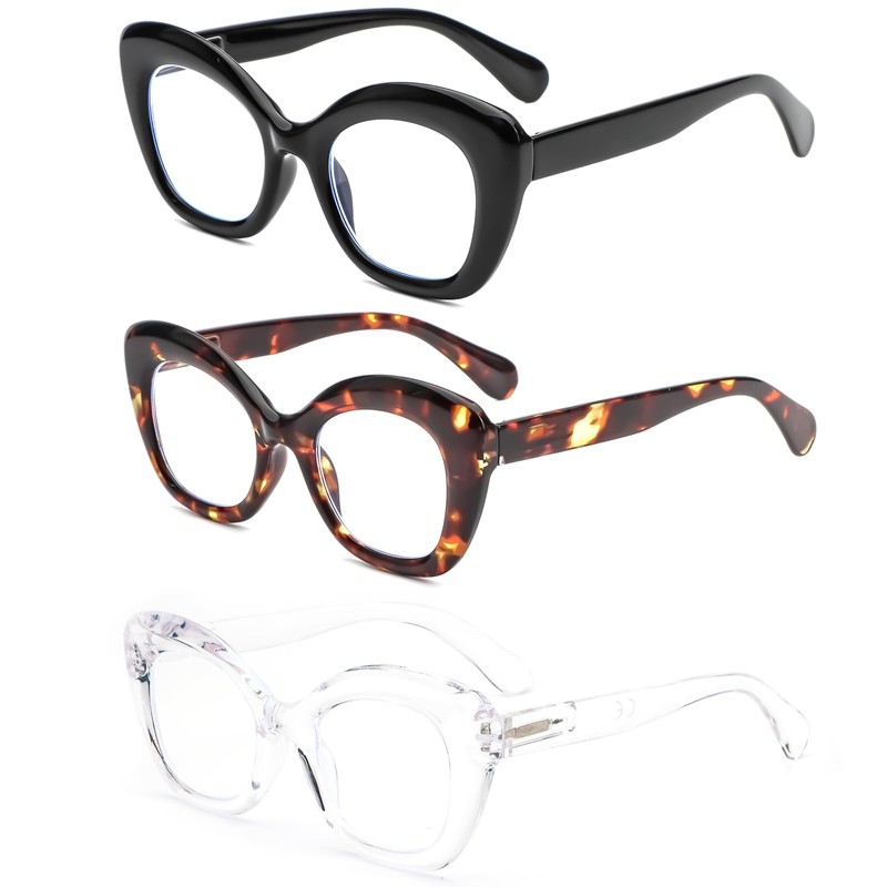- Thick Frame Cateye Reading Glasses - The unique and lovely large frame cat eye design is fashionable and elegant. Wearing these chic cat-eye glasses will instantly enhance your face and keep you looking stylish.