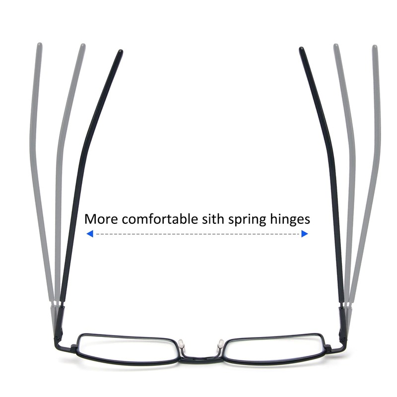- 【Metal Frame with Spring Hinge】The frame is made of high-quality metal material, which is lightweight and not easy to break. Sturdy spring hinges will not oppress your temples and nose.