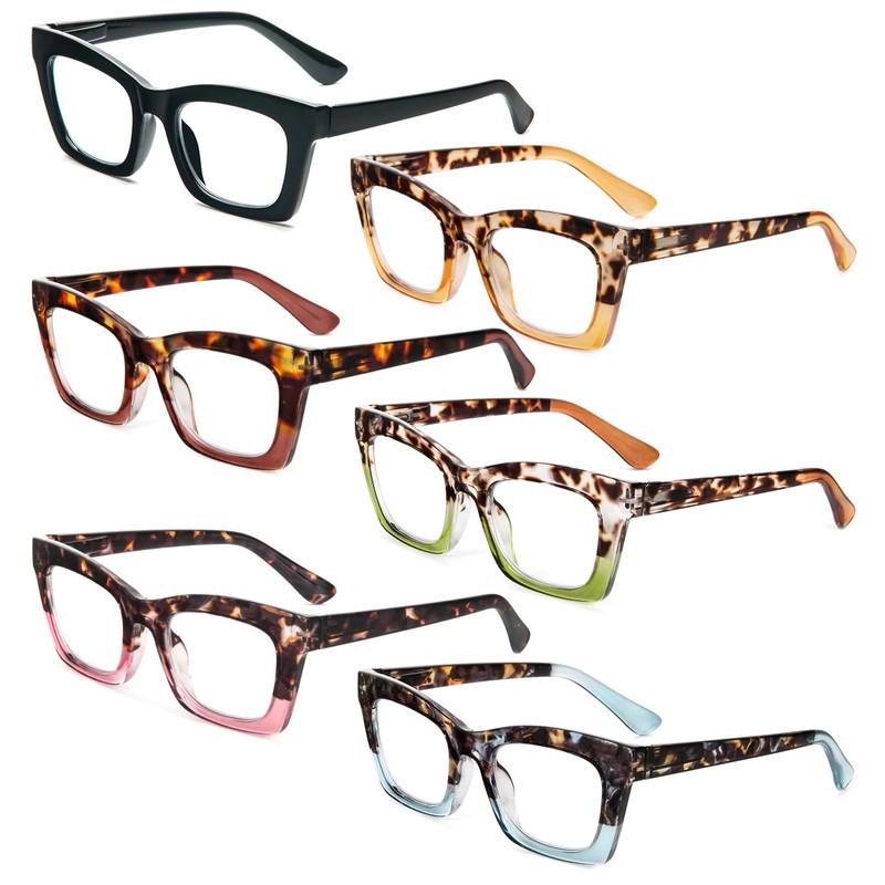 - Lady‘s Stylish Reading Glasses: Beautifully crafted reading glasses for people who loves fashion. The Trendy design of the large and square rims is suitable for all face shapes. Whether you're walking down the street, work, or read, this design will make you more attractive.