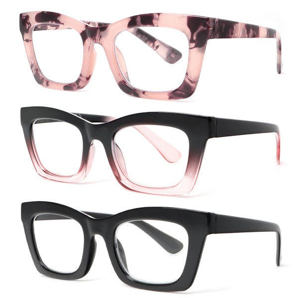 REAVEE Oprah Style Reading Glasses for Women Blue Light Blocking Computer Fashion Readers with Spring Hinge and Glasses pouch (Black/Pink/Tortoise +2.0)