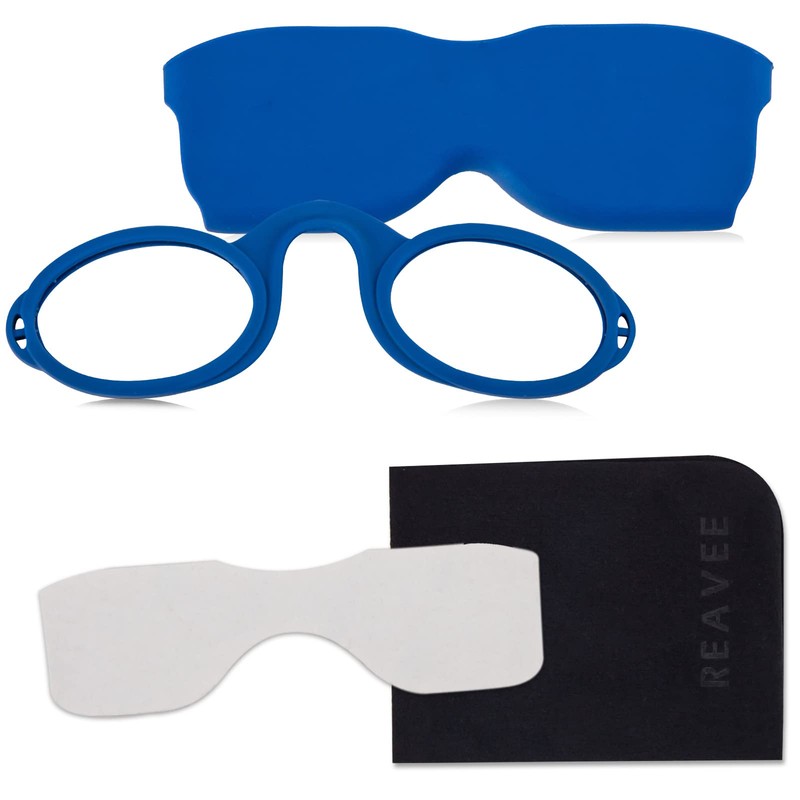 REAVEE Ultra Slim Armless Reading Glasses for Men Women, Small and Flat Readers Compact Pocket Size with Stick-on Case Holder,Blue 2.0