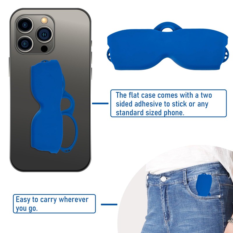 - 【PACKING LIST】1 pair of reading glasses, 1 silicone case, 1 cleaning cloths and 1 double sided adhesive . The silicone case protects the clear lens from scratches. Microfiber glasses cleaning cloth ensures that your presbyopes are always clean.Also comes with a sticker you can use to stick the case to your cell phone for easy carrying.