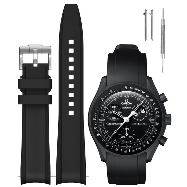REBANDACE Strap for Moonwatch Watch,Curved Silicone Replacement Strap for Omega X watch Speedmaster Moonwatch Watch 20mm,Soft Strap for watch Omega Men Women