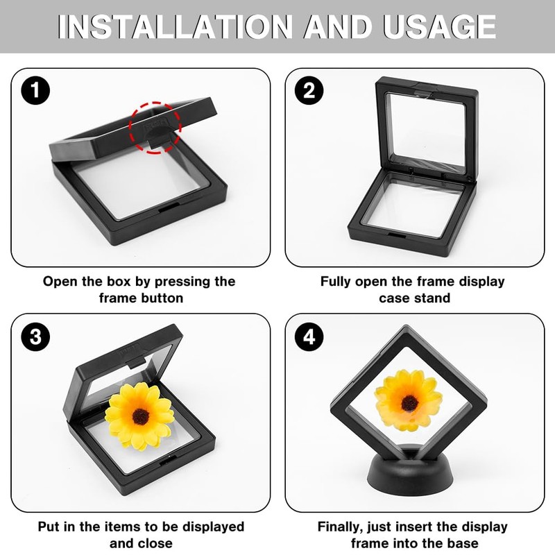 - 3D floating display stand: you can place the items between two transparent, flexible plastic films to achieve a floating 3D display effect. It can be used as a decoration on the desk or on the wall.