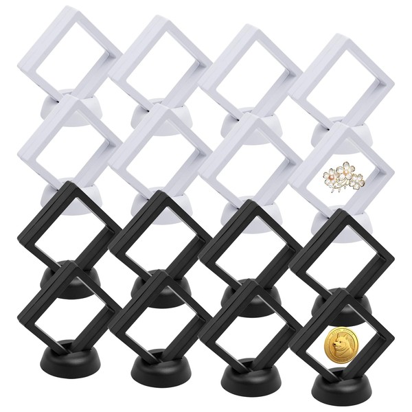 Rebanky Pack of 16 Floating Display Frame, Floating 3D Display Case Display Frame Box with Base, Transparent Floating Frame, Floating Frame Display for Copies, Necklace (Black, White)
