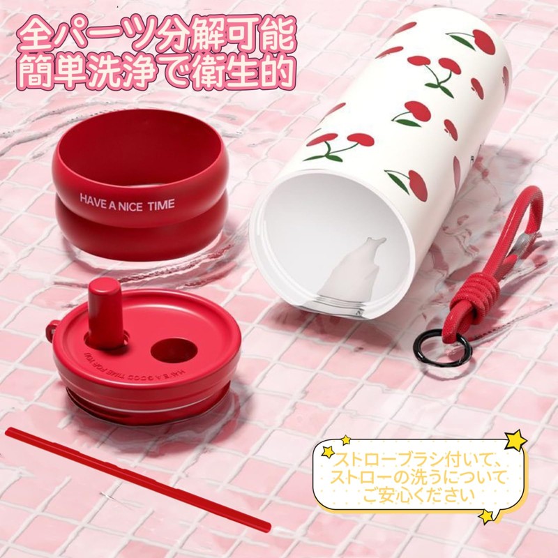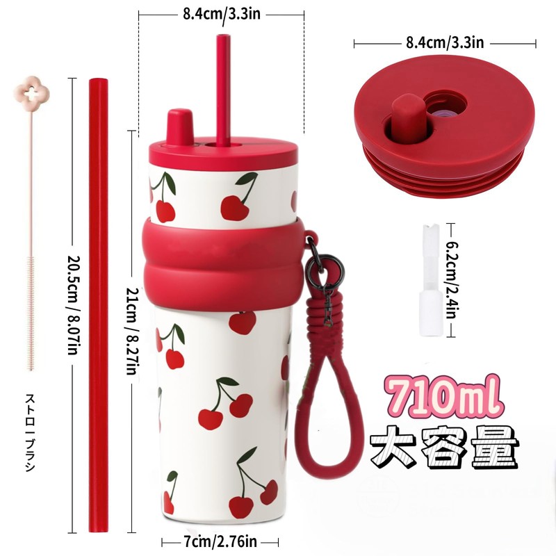 REBEAUQ 710ml Insulated Tumbler with Lid and Straw (Cherry)