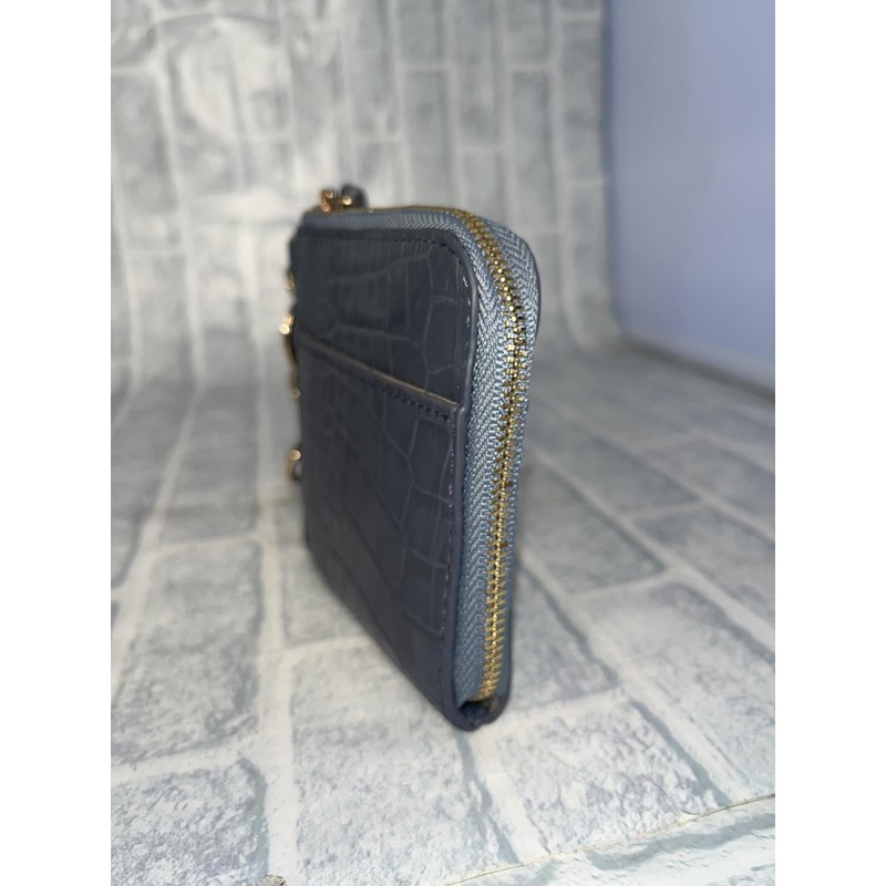 Rebecca JT-250221 Compact Wallet, L-Shaped Zipper, with Strap & Holder, Genuine Cow Leather, Crocodile Embossed Leather, Wallet, Wallet, Mini Wallet, Unisex, Unisex, gray