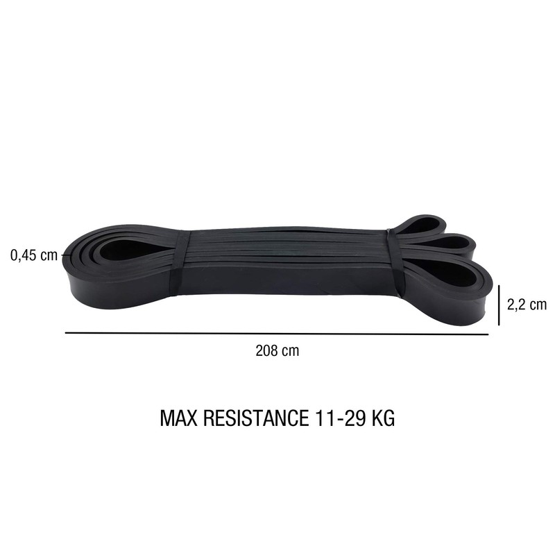 - SPECIFICATIONS: Measure: Circumference 208 cm x thickness 0,45 cm x height 2,2 cm - Resistance: 11/29 kg - Colour: Black - Material: latex - Code SP5046