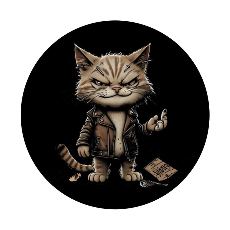 - cartoon cat in leather jacket, edgy feline illustration street-style, cool punk cat with leather jacket, cartoon cat with tough attitude art, funny rebellious cat character, stylish rogue cat illustration for urban, cool mischievous cat artwork for edgy