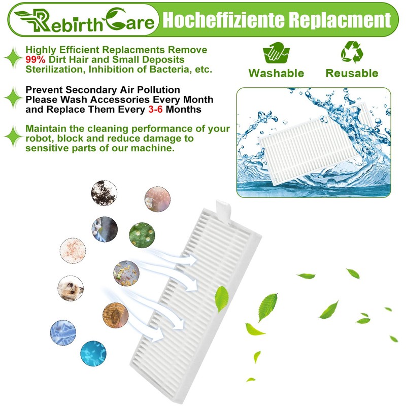 • ??Beste Kompatiblit?t??Rebirthcare Ersatzteile Zubeh?r Kits f1r Eufy Saugroboter Boostiq Technologie. Perfekt kompatibel mit Eufy f1r RoboVac 11S, f1r RoboVac 15C, f1r RoboVac 30, f1r RoboVac 30C, f1r RoboVac 15T, f1r RoboVac 12, f1r RoboVac 25C, f1r RoboVac 39C, f1r RoboVac 35C Saugroboter Ersatzteile Zubeh?r. Value kit es beeinhaltet Hauptb1rste X1, Seitenb1rste X8, Hepa-Filter set (hocheffiziente filter & schaumfilter)X6, Prim?rfilterX1, Filterreinigungsb1rste X1. Bitte best?tigen Sie Ihr Robotermodell vor dem Kauf.