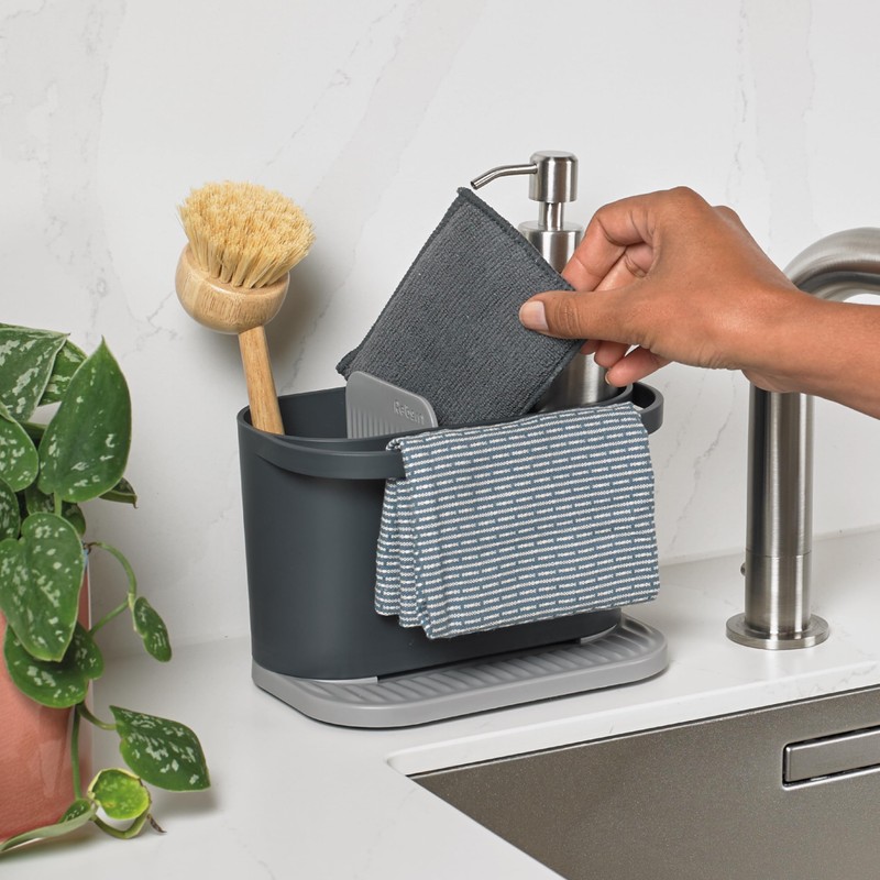 - KITCHEN SINK ORGANISER - The ReBorn sink tidy helps organise your sink area, with universal storage for brushes, bottles and cloths