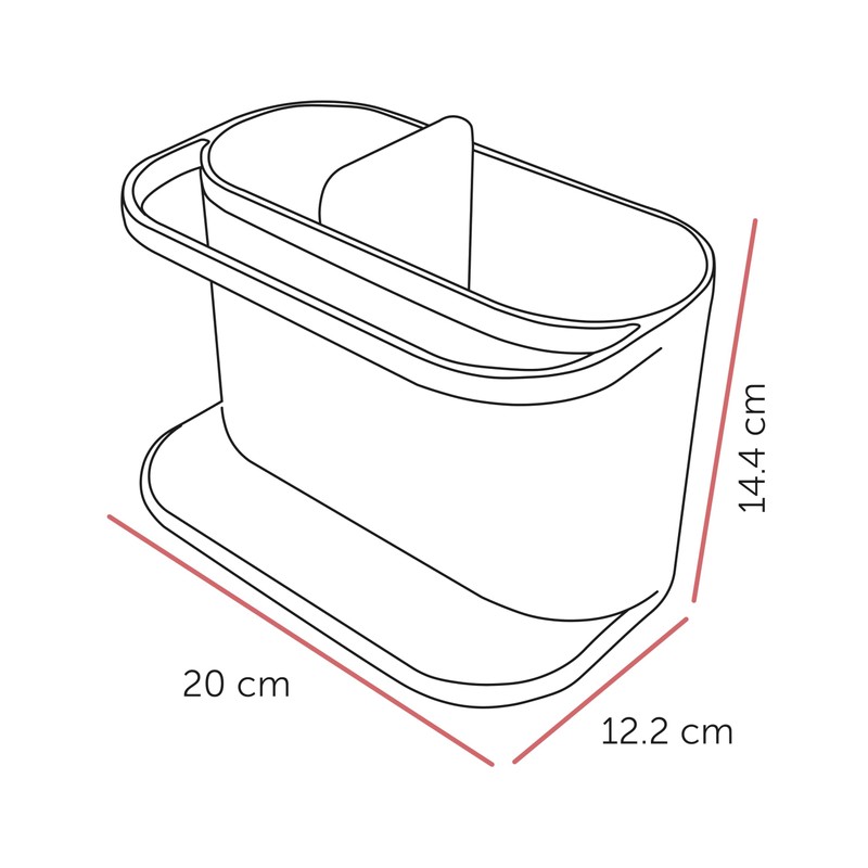 The main compartment divides into two parts - large enough for a detergent bottle, brush and sponge. The integrated rail is perfect for hanging damp dishcloths. It has a ribbed, sloping base ensures excess water or soap suds are collected out of sight, for draining later. The components can be taken apart for easy cleaning. Lastly, the non-slip base helps protect your surfaces from scratches.