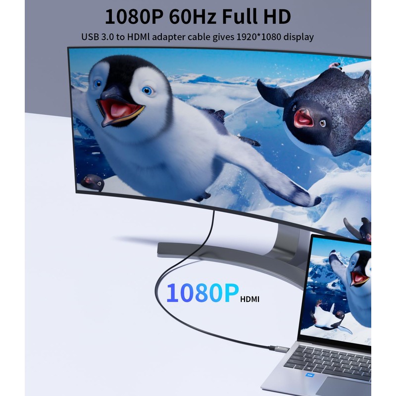 • 1080P 60Hz Full HD : USB 3.0 to HDMI adapter cable gives 1920*1080 display. Use with computer's HDMI & USB to connect two. If screen res >1920*1080, adjust to 1920*1080. With USB 2.0 or unsupported receiving device, output is 800*600. Else, it fails.