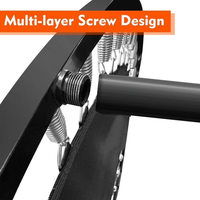 - Stable Jumping Area - The rebounder can withstand weights of up to 150kg, thanks to its sturdy construction. The trampoline's larger jumping area and weight capacity provide stability and safety while performing jumps and other exercises.