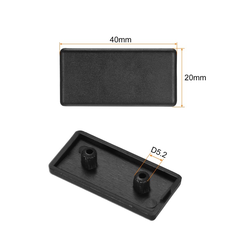 - 2-[Size]:20 x 40mm/0.79" x 1.57"(L*W);Mounting Dia:D5.2;Package Content:10pcs x Aluminum Profile End Cap,For 2040 EU Standard Aluminum Profile