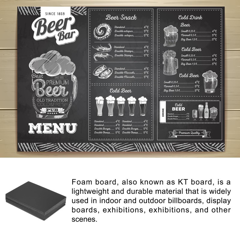 Foam board, also known as KT board, is a lightweight and durable material that is widely used in indoor and outdoor billboards, display boards, exhibitions, exhibitions, and other scenes. It is also suitable for painting, art, education, presentation, modeling, DIY craft creation, etc
